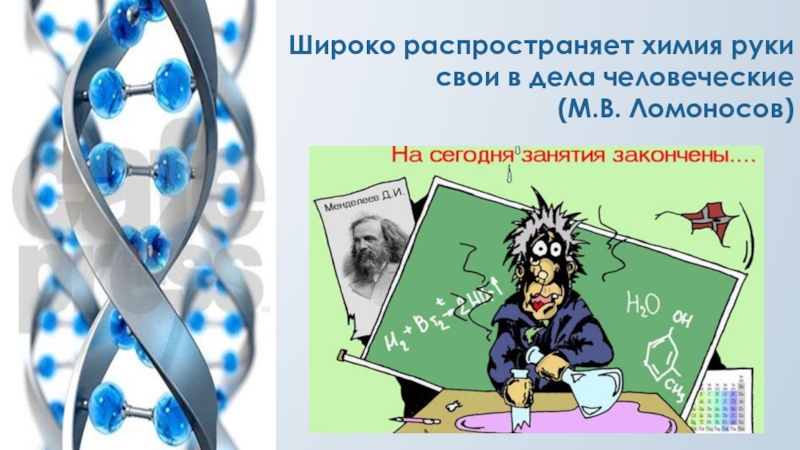 Слайд 36Широко распространяет химия руки свои в дела человеческие