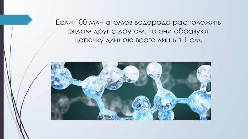 Слайд 23Если 100 млн атомов водорода расположить рядом друг с другом, то