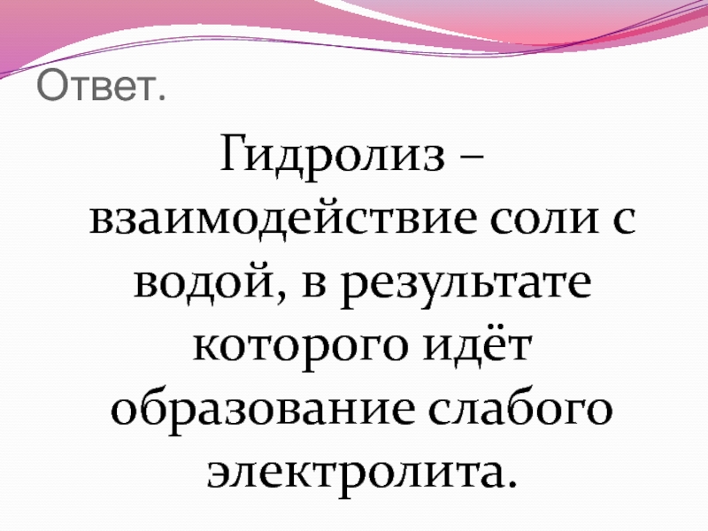 Гидролиз – взаимодействие соли с водой, в результате которого идёт