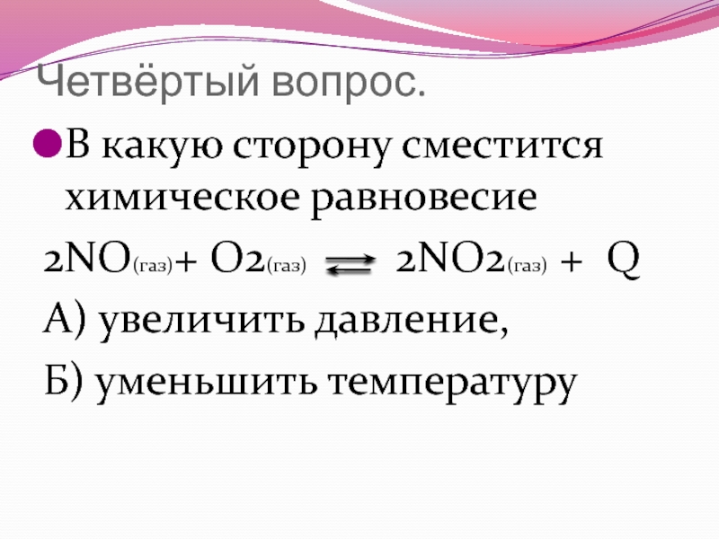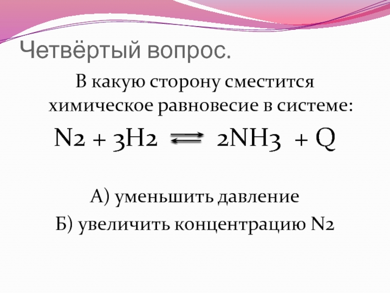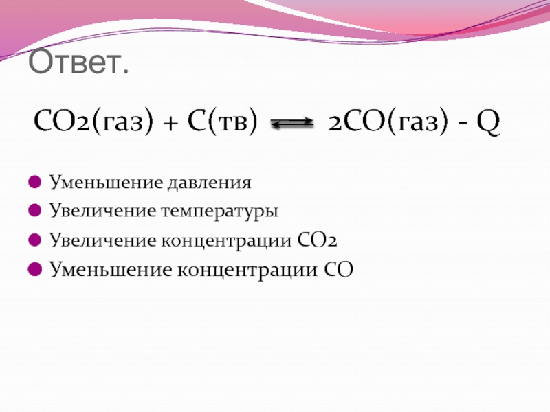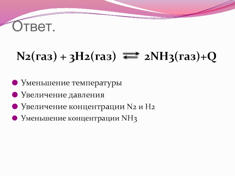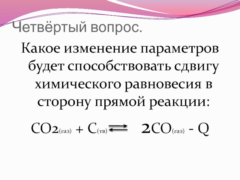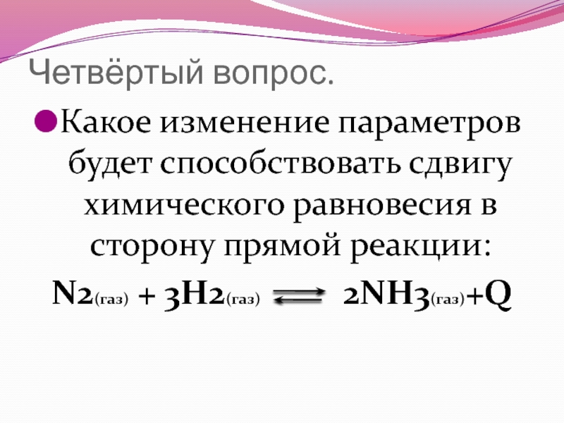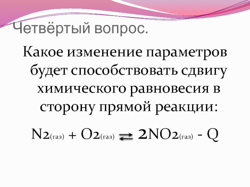 Какое изменение параметров будет способствовать сдвигу химического равновесия в сторону
