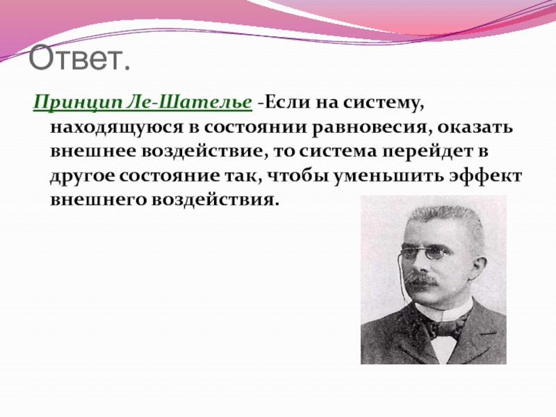 Принцип Ле-Шателье -Если на систему, находящуюся в состоянии равновесия, оказать