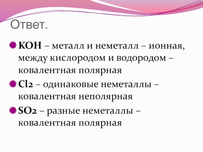 Cl2 – одинаковые неметаллы – ковалентная неполярная