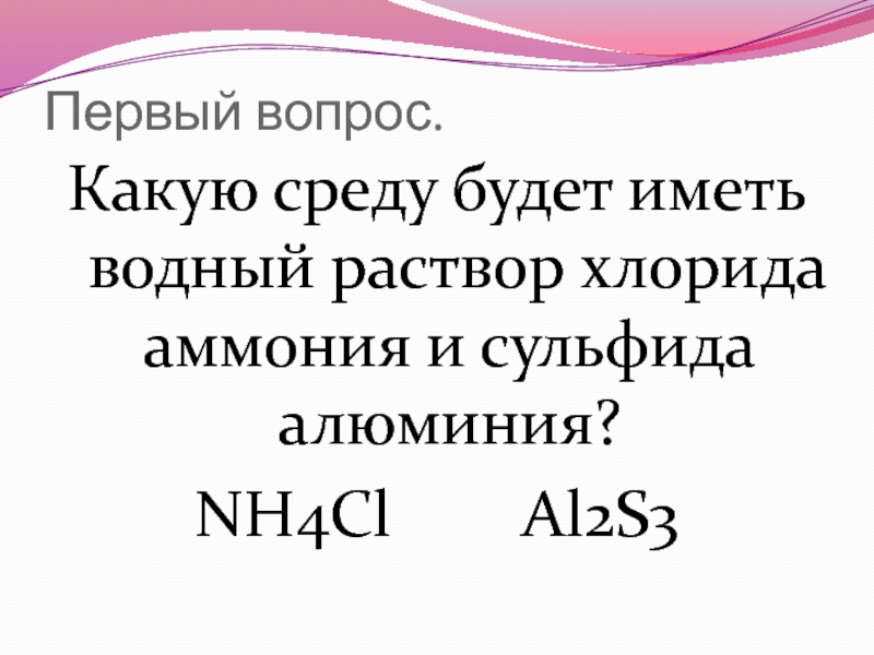 Какую среду будет иметь водный раствор хлорида аммония и сульфида