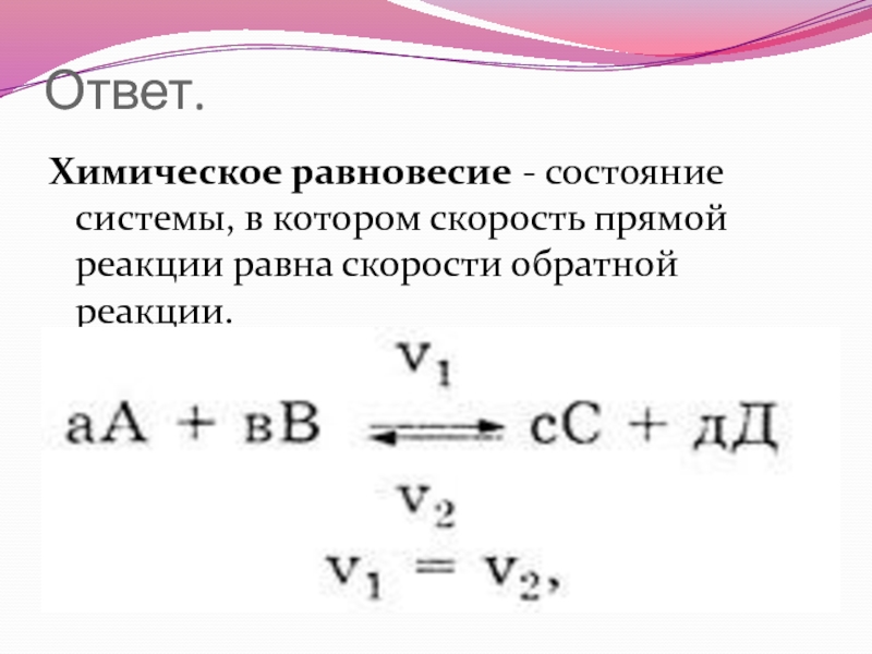Химическое равновесие - состояние системы, в котором скорость прямой реакции равна