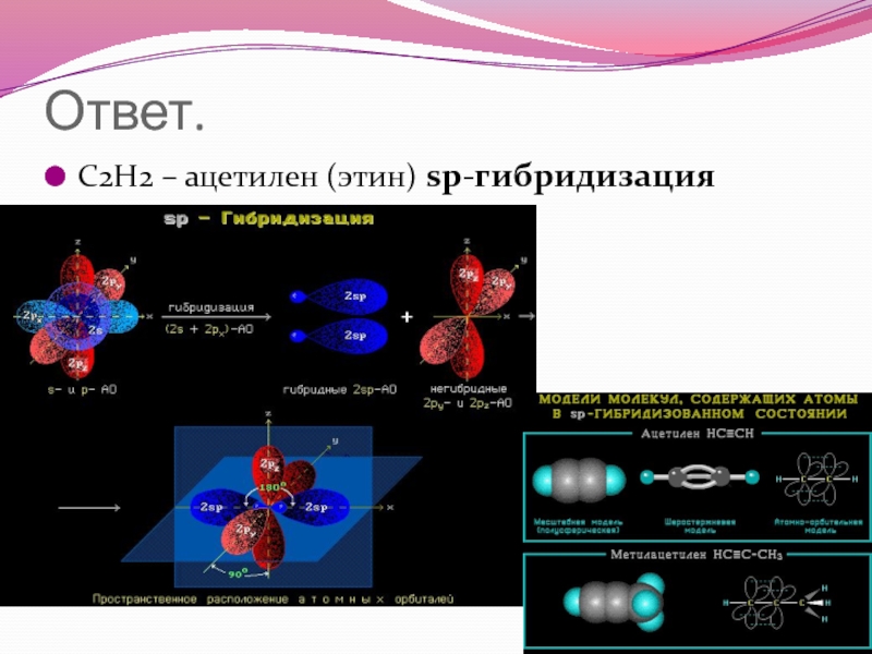 С2Н2 – ацетилен (этин) sp-гибридизация