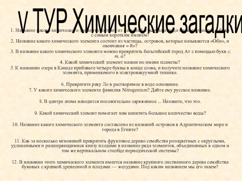 2. Название какого химического элемента состоит из частицы, островов, которые называются «Оби», и окончания «-й»?