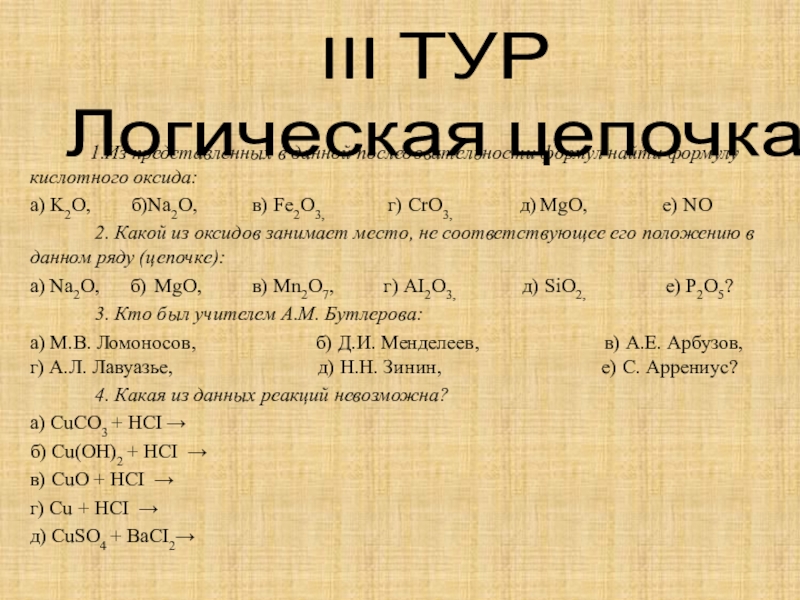 2. Какой из оксидов занимает место, не соответствующее его положению в данном ряду (цепочке):