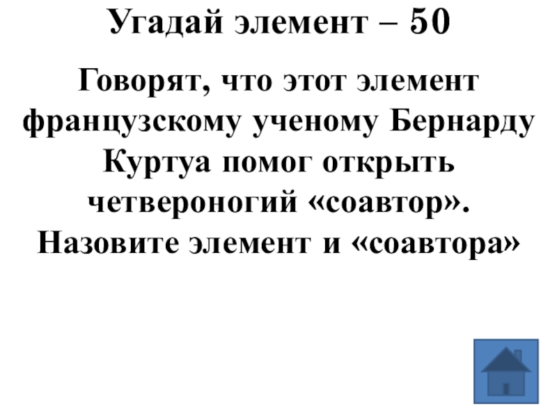 Куртуа помог открыть четвероногий «соавтор». Назовите элемент и «соавтора»