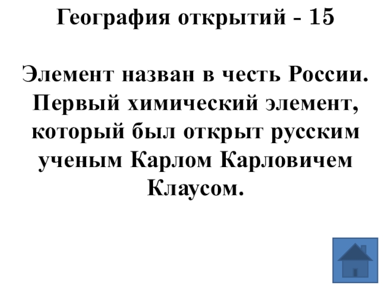 Элемент назван в честь России. Первый химический элемент,