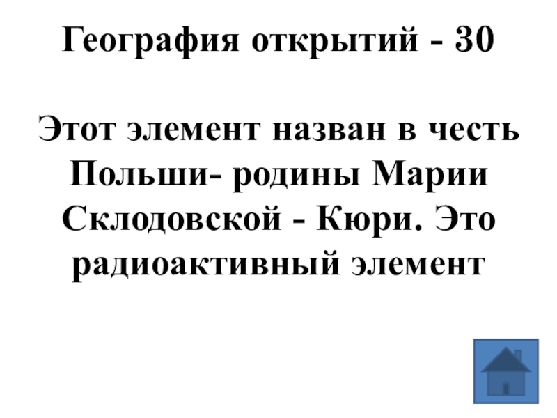 Этот элемент назван в честь Польши- родины Марии