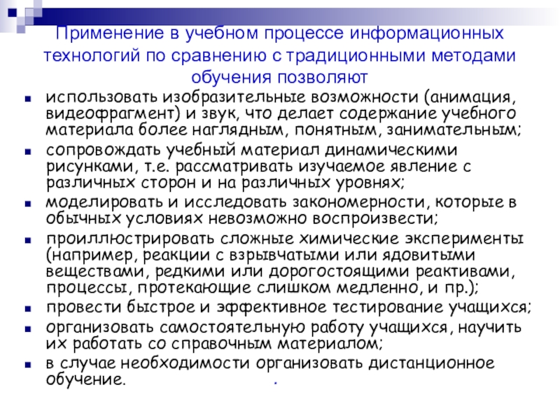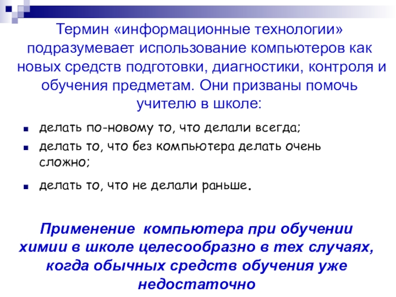 Применение компьютера при обучении химии в школе целесообразно в тех случаях, когда обычных средств обучения уже недостаточно