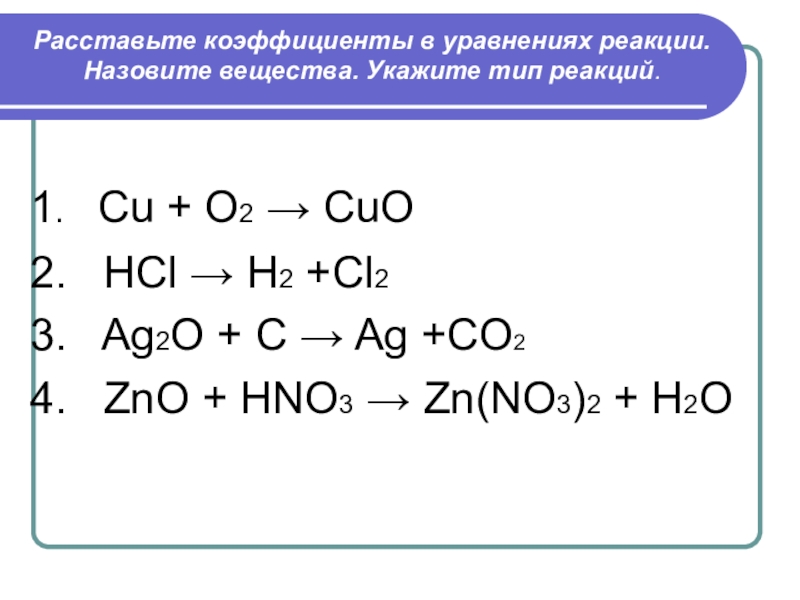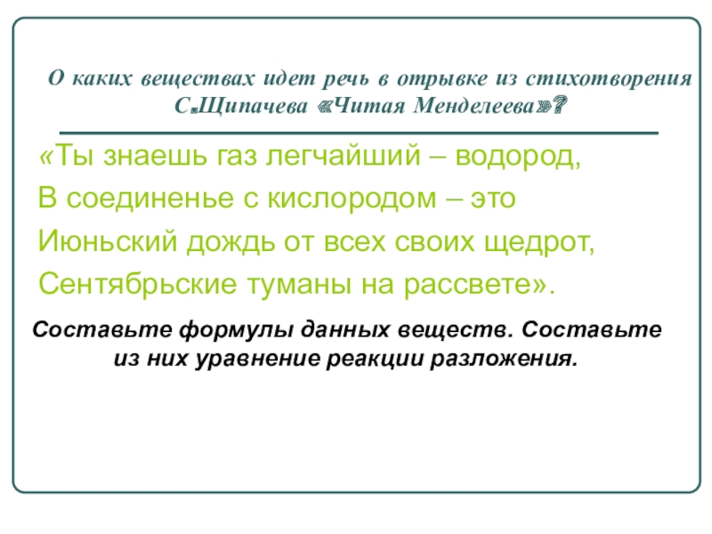 Составьте формулы данных веществ. Составьте из них уравнение реакции разложения.