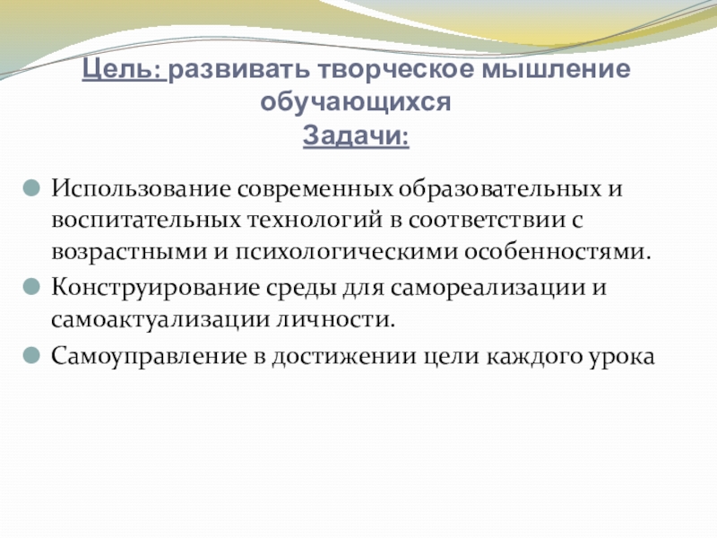 Слайд 5Цель: развивать творческое мышление обучающихся