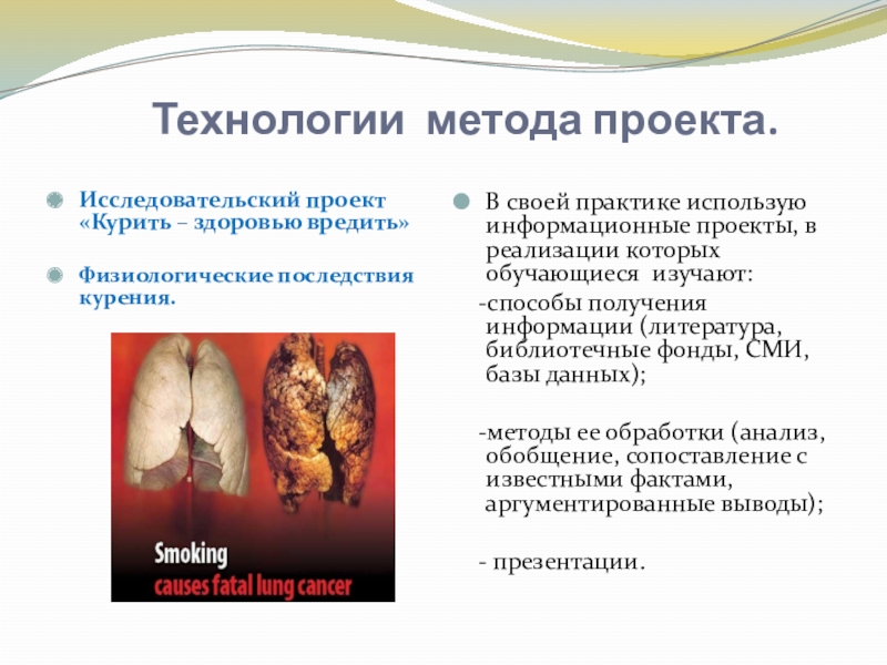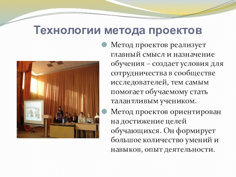 Метод проектов ориентирован на достижение целей обучающихся. Он формирует большое количество умений и навыков, опыт деятельности.