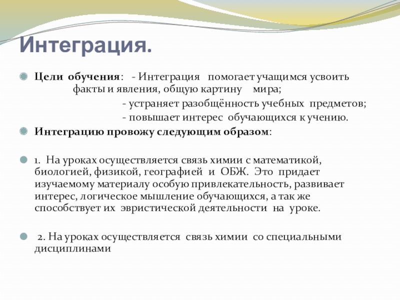 Цели обучения: - Интеграция помогает учащимся усвоить