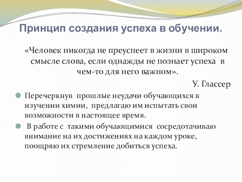 Перечеркнув прошлые неудачи обучающихся в изучении химии, предлагаю им испытать свои возможности в настоящее время.