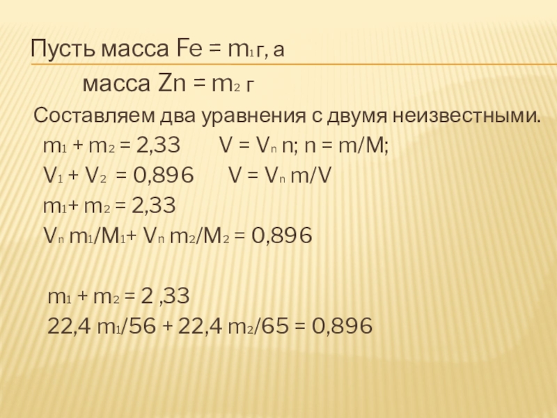 22,4 m1/56 + 22,4 m2/65 = 0,896