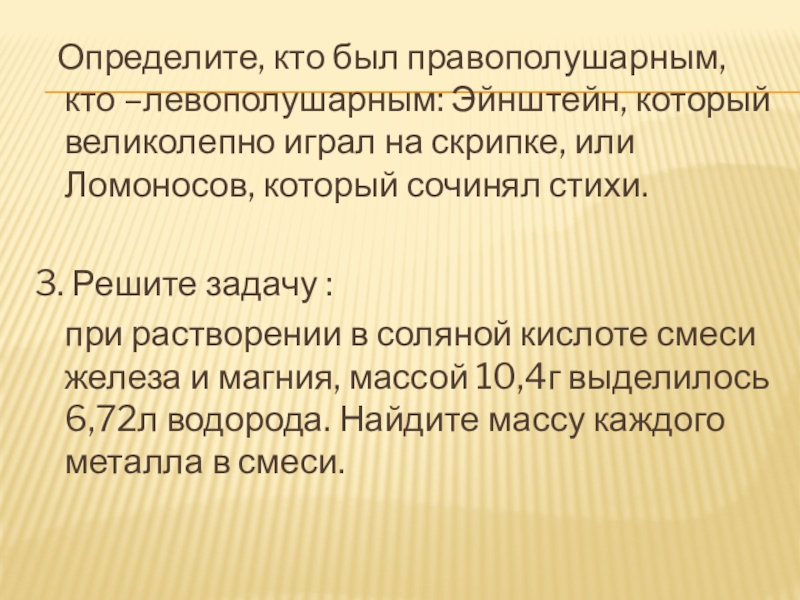 Слайд 22 Определите, кто был правополушарным, кто –левополушарным: Эйнштейн, который великолепно