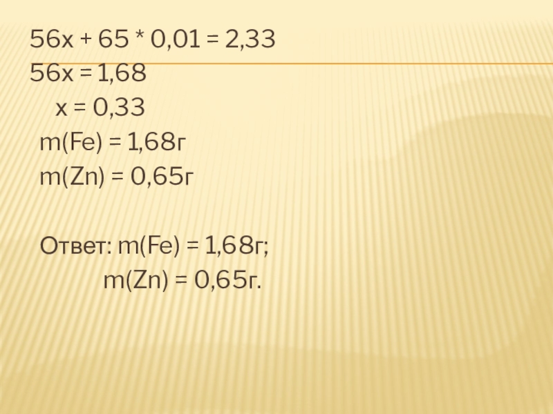 Слайд 20 56х + 65 * 0,01 = 2,33