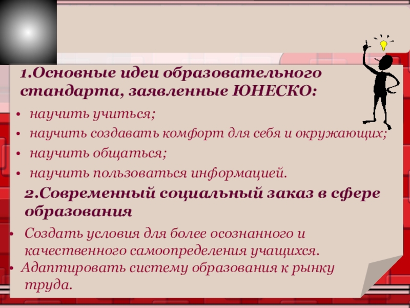 1.Основные идеи образовательного стандарта, заявленные ЮНЕСКО: