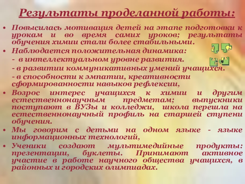 Повышение естественной потребности педагога в самосовершенствовании, саморазвитии как способе сохранения своего профессионального имиджа, установление тесного сотрудничества с учащимися, так необходимого для достижения поставленных целей.