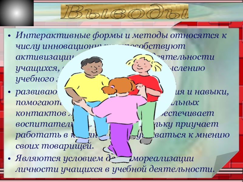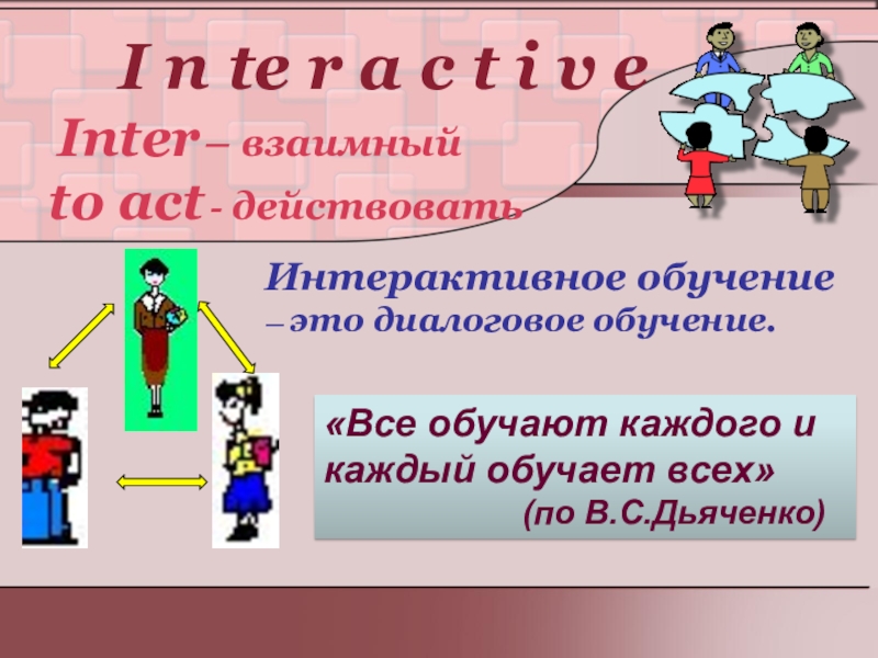 интерактивные методы ориентированы на более широкое взаимодействие учеников не только с учителем, но и друг с другом, а также на доминирование активности учащихся в процессе обучения.