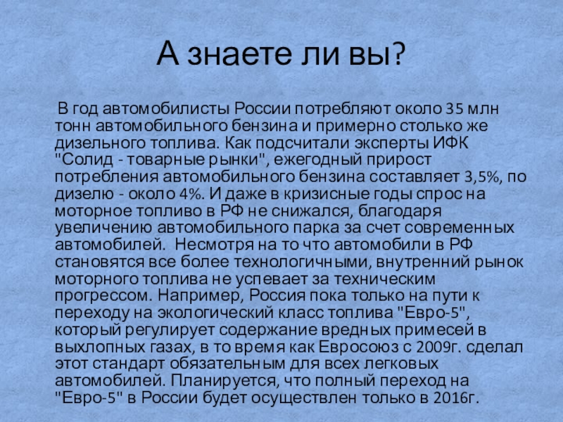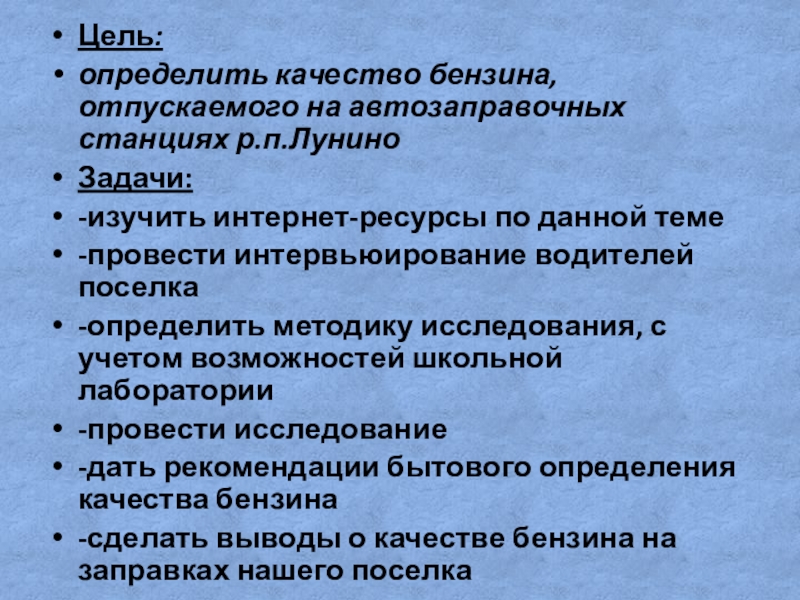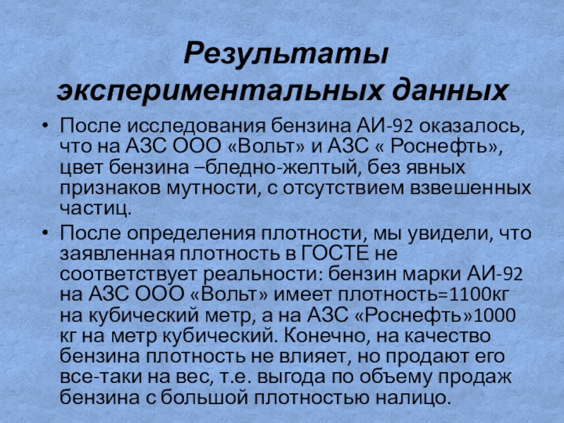 «Исследование качества бензина
