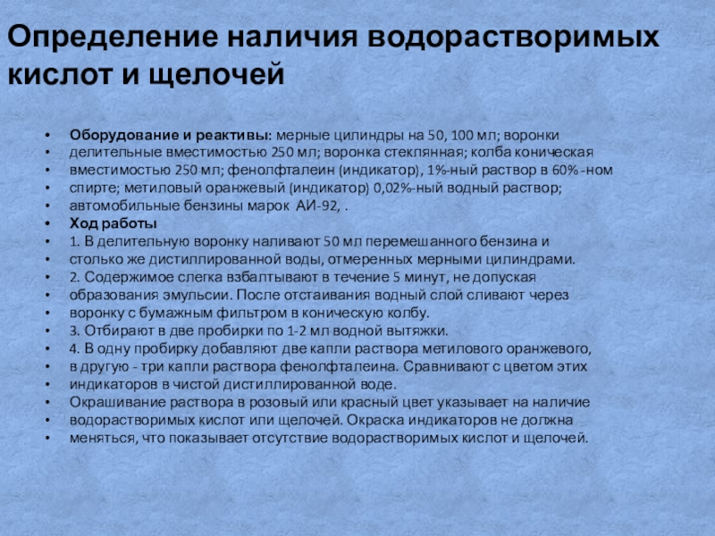 Определение наличия водорастворимых кислот и щелочей