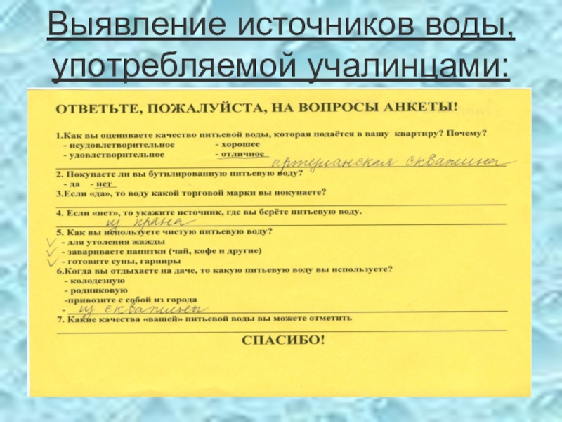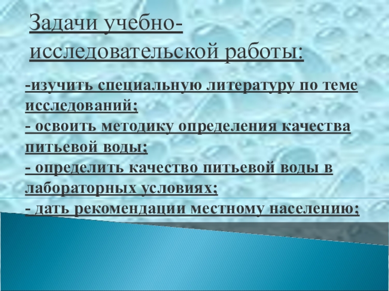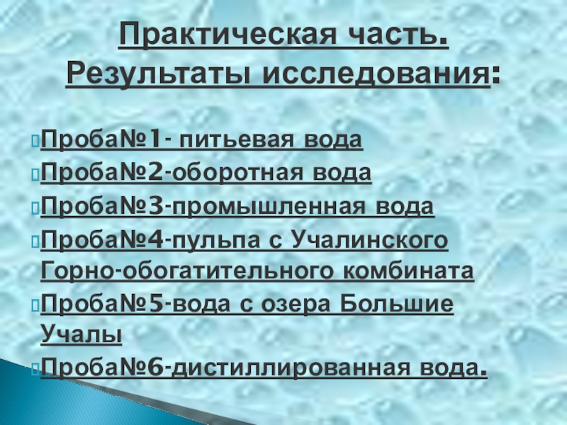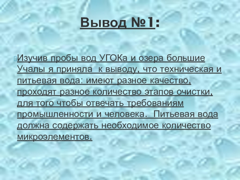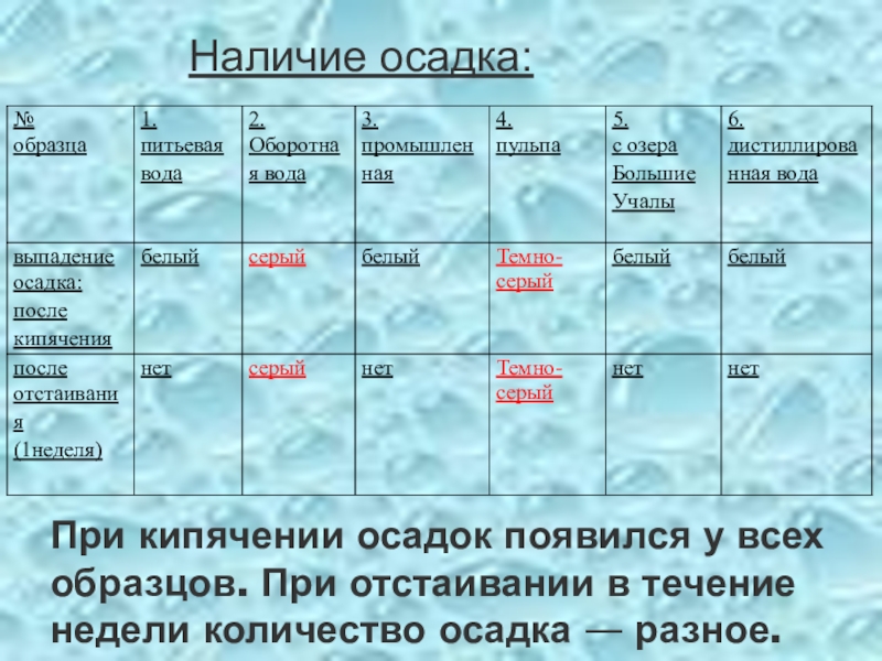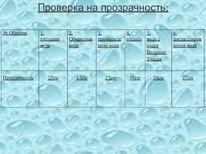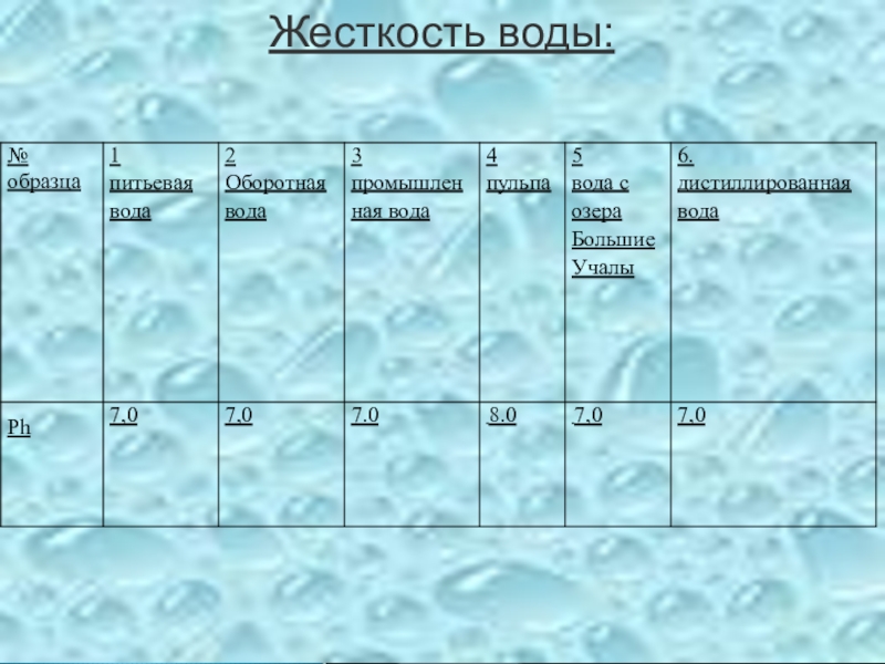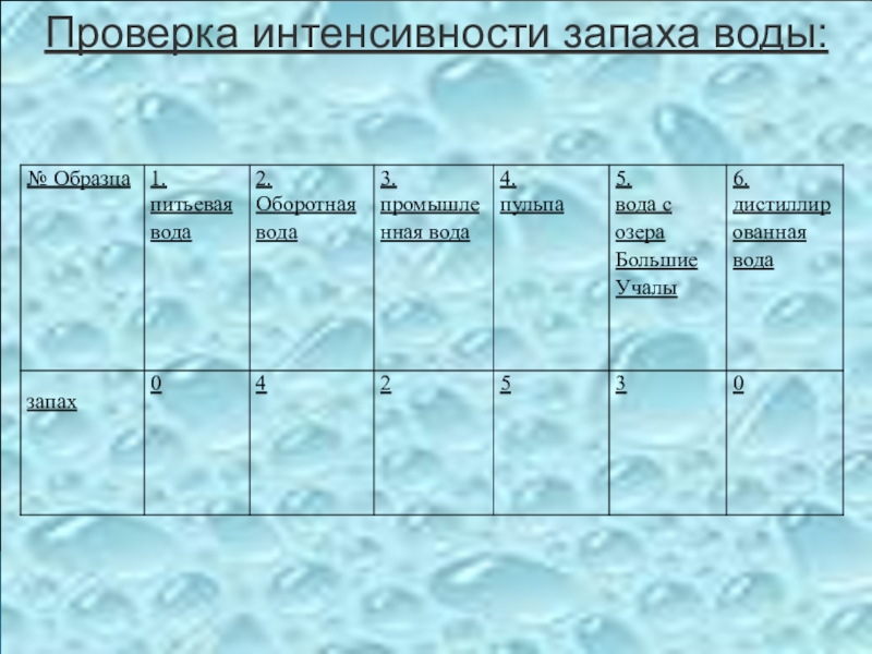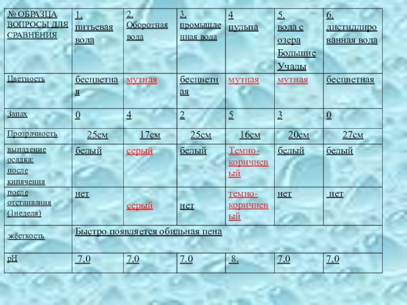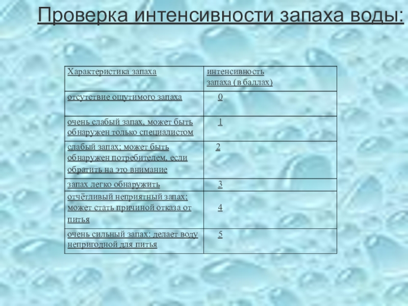 Требования к качеству воды: