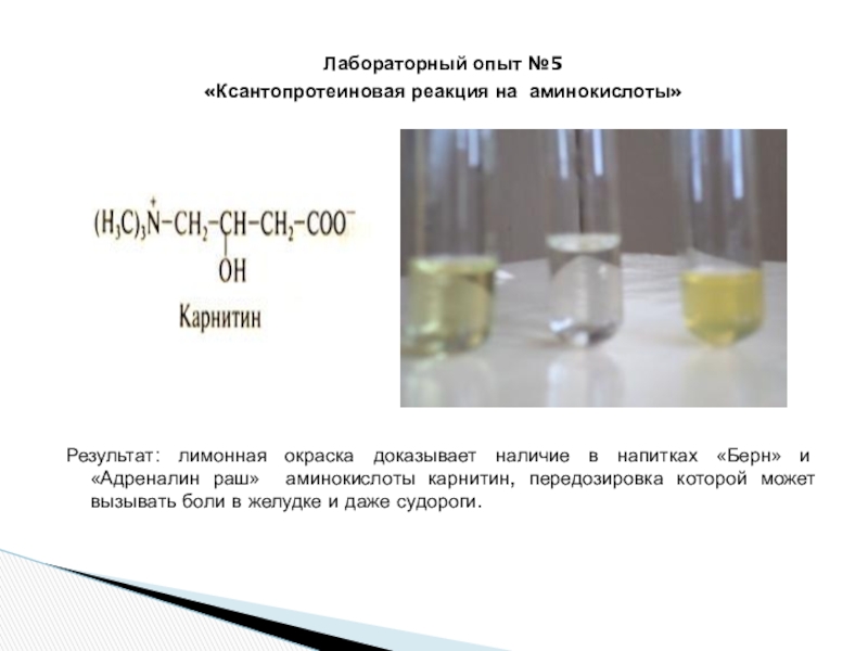 в напитках «Берн» и «Адреналин раш» аминокислоты карнитин, передозировка которой может вызывать боли в желудке и даже судороги.