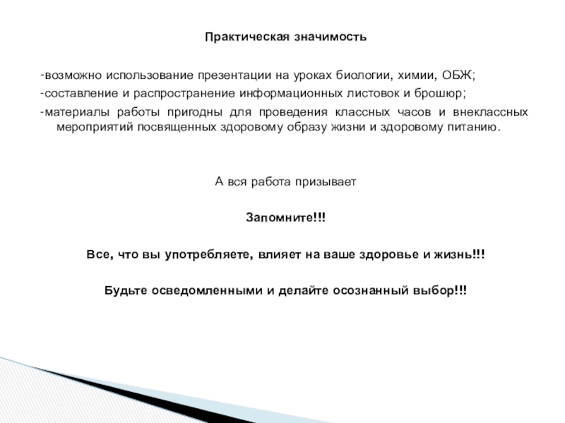 -материалы работы пригодны для проведения классных часов и внеклассных мероприятий посвященных здоровому образу жизни и здоровому питанию.