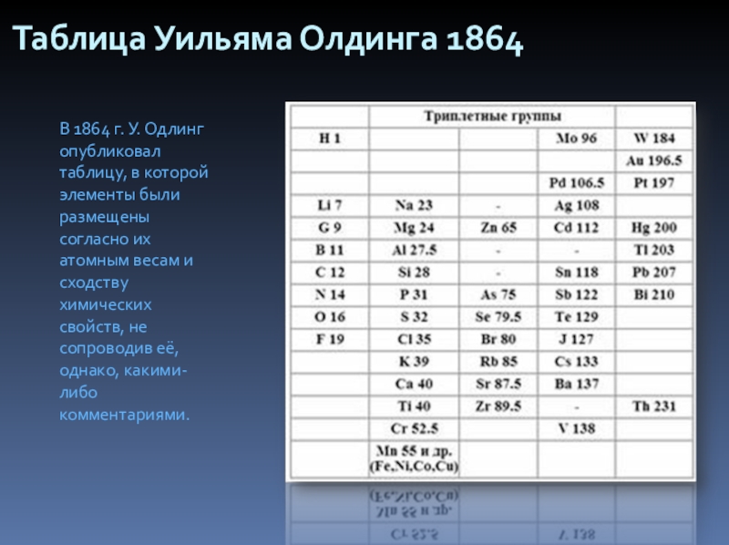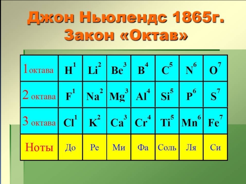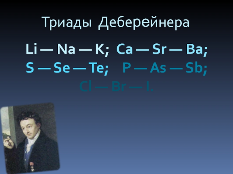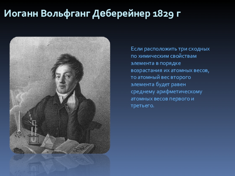 элемента в порядке возрастания их атомных весов, то атомный вес второго элемента будет равен среднему арифметическому атомных весов первого и третьего.