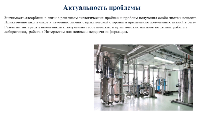 Значимость адсорбции в связи с решением экологических проблем и проблем получения особо чистых веществ.