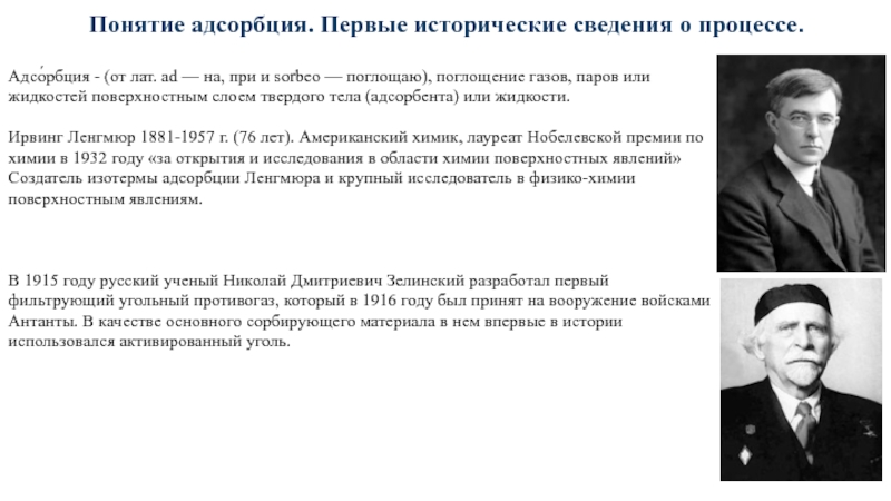 Слайд 4Понятие адсорбция. Первые исторические сведения о процессе.