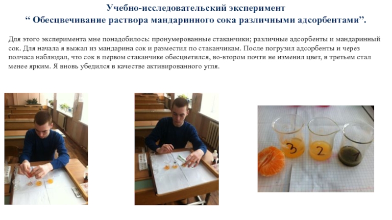 “ Обесцвечивание раствора мандаринного сока различными адсорбентами”.