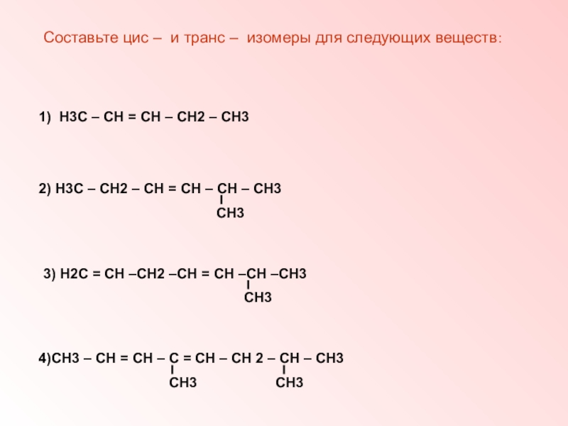 4)СН3 – СН = СН – С = СН – СН 2 – СН – СН3