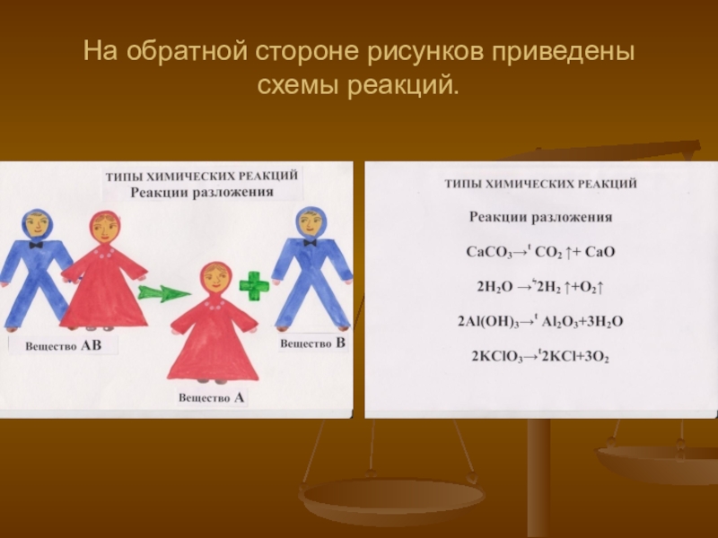 Слайд 8На обратной стороне рисунков приведены схемы реакций.