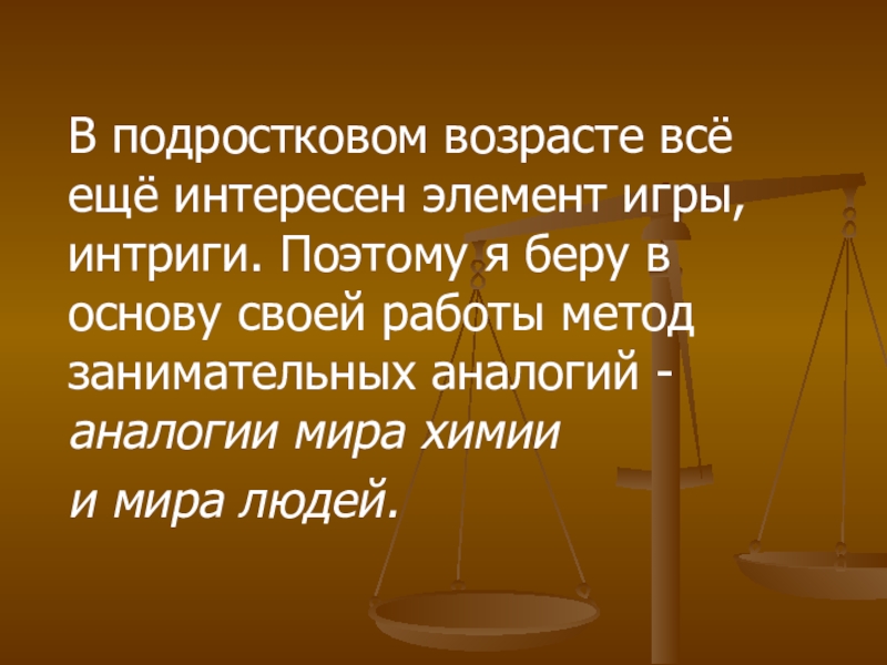 Слайд 4В подростковом возрасте всё ещё интересен элемент игры, интриги. Поэтому я