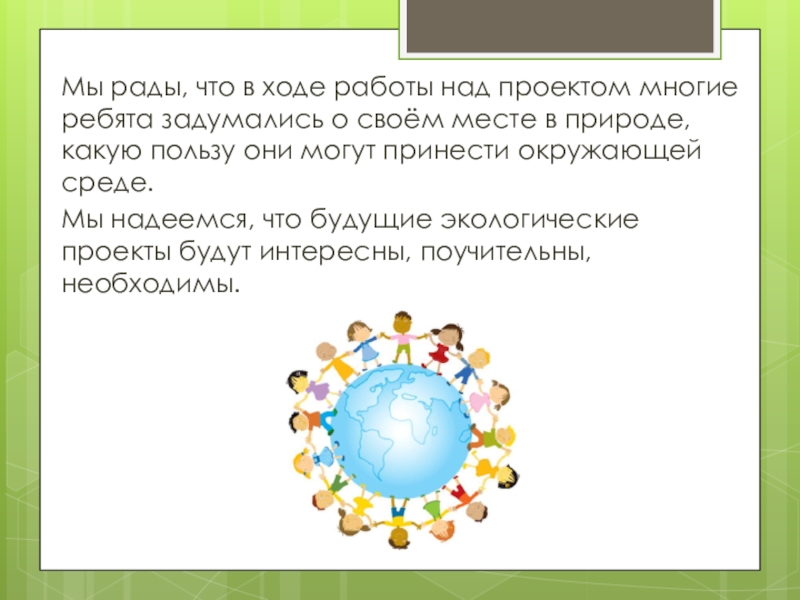 Мы надеемся, что будущие экологические проекты будут интересны, поучительны, необходимы.