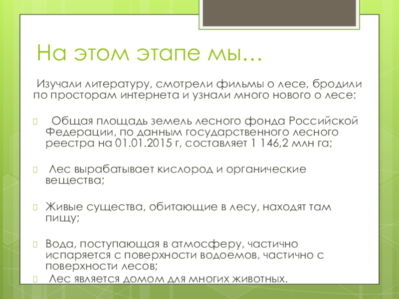 Слайд 12Узнав такую важную информацию о лесе, об охране лесов мы решили