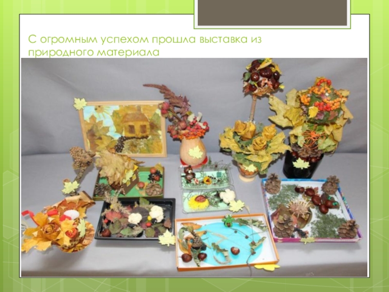 Слайд 27С огромным успехом прошла выставка из природного материала