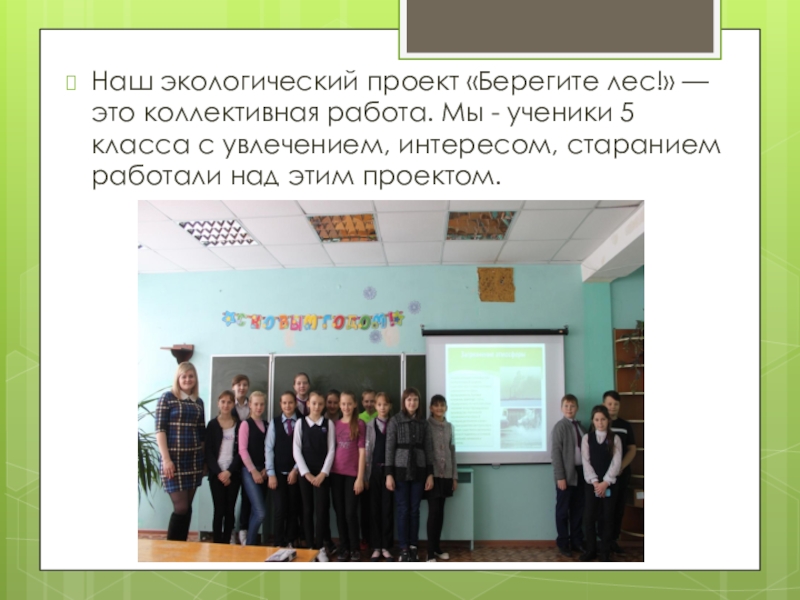 Слайд 48Наш экологический проект «Берегите лес!» — это коллективная работа. Мы -