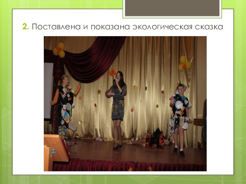 Слайд 372. Поставлена и показана экологическая сказка