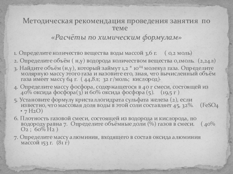 Расчёты по химическим формулам;