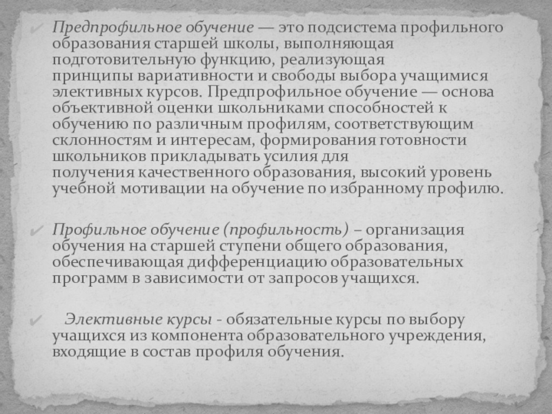 Слайд 3Предпрофильное обучение — это подсистема профильного образования старшей школы, выполняющая подготовительную функцию, реализующая