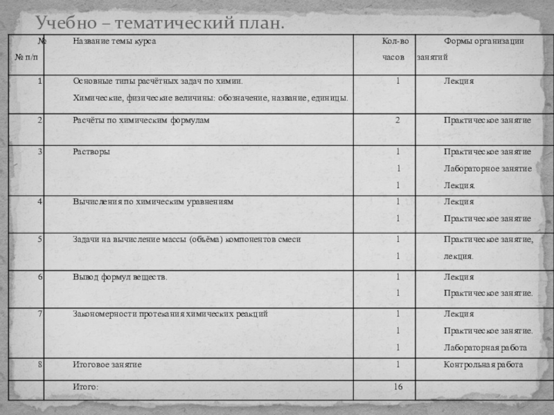 Программа рассчитана на 16 часов, 1 час в неделю.