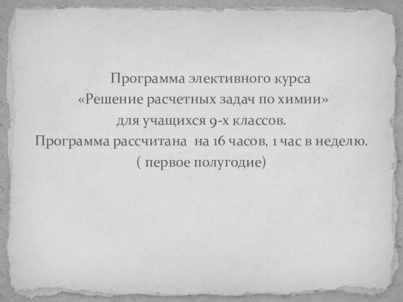 Элективный курс «Решение расчетных задач по химии»