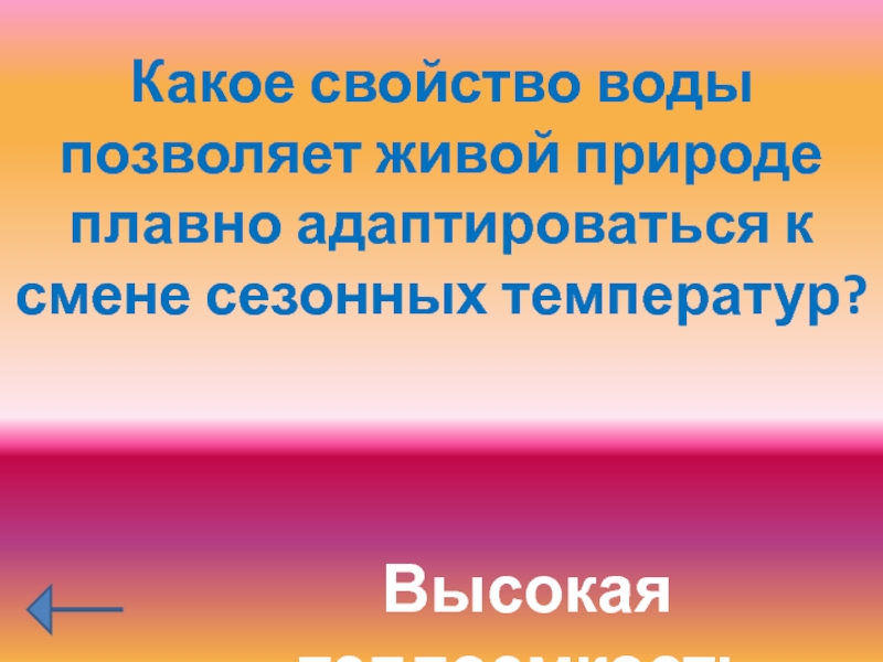 Какое свойство воды позволяет живой природе плавно адаптироваться к смене