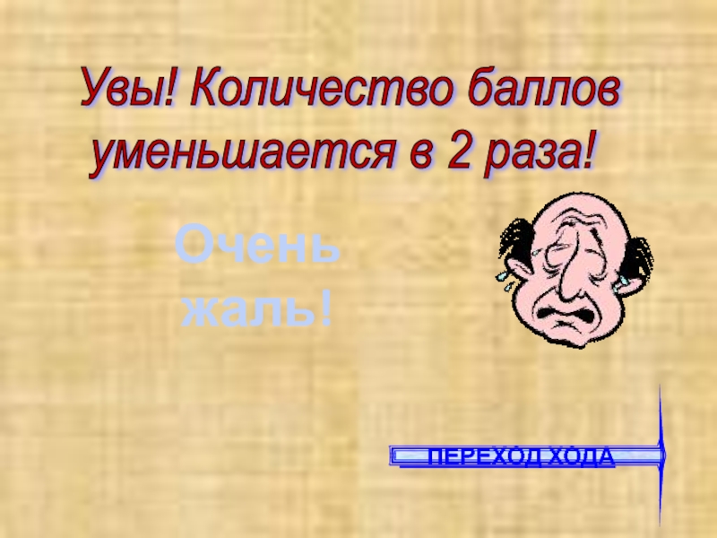 Увы! Количество баллов   уменьшается в 2 раза!    ПЕРЕХОД ХОДАОчень жаль!