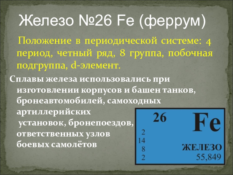 Железо – главная составная часть чугунов и сталей, а по их выплавке судят о мощности государства.